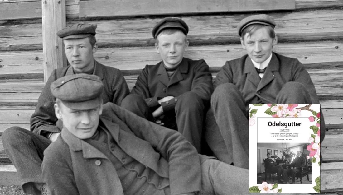 Bildet er tatt 3. mai 1908, fra venstre: Karl Stenerud fra Årstad, som reiste til Amerika i 1912, og som aldri kom tilbake til Norge. Trygve Kjølstad, da 21 år gammel, reiste etter i 1913. Han kom hjem igjen etter at første verdenskrig var over, giftet seg og kjøpte gard i Vestfold. Hans Kjølstad, som skrev den første dagbokserien, og liggende foran, Ole Kjølstad som skrev den andre dagbokserien. (Fotograf ukjent)