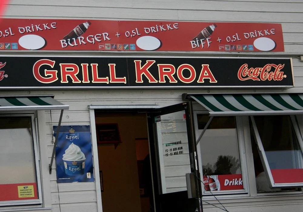 Grill Kroa står der fortsatt, så det er nok ingen som har forsøkt å grille den. Jeg har aldri vært inne der, så jeg vet ikke om det egentlig er ei grillkro som selger grillmat.